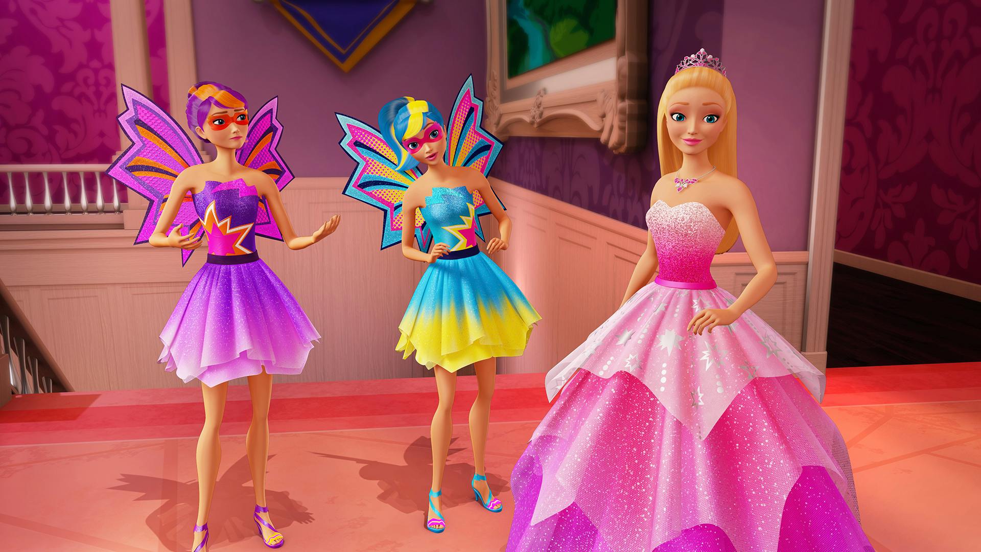 Barbie est une princesse des temps modernes. Après avoir reçu un baiser d’un papillon magique, elle se voit dotée de pouvoirs extraordinaires et se transforme en Super Paillette. Afin de sauver son royaume, elle décide de combattre le mal.