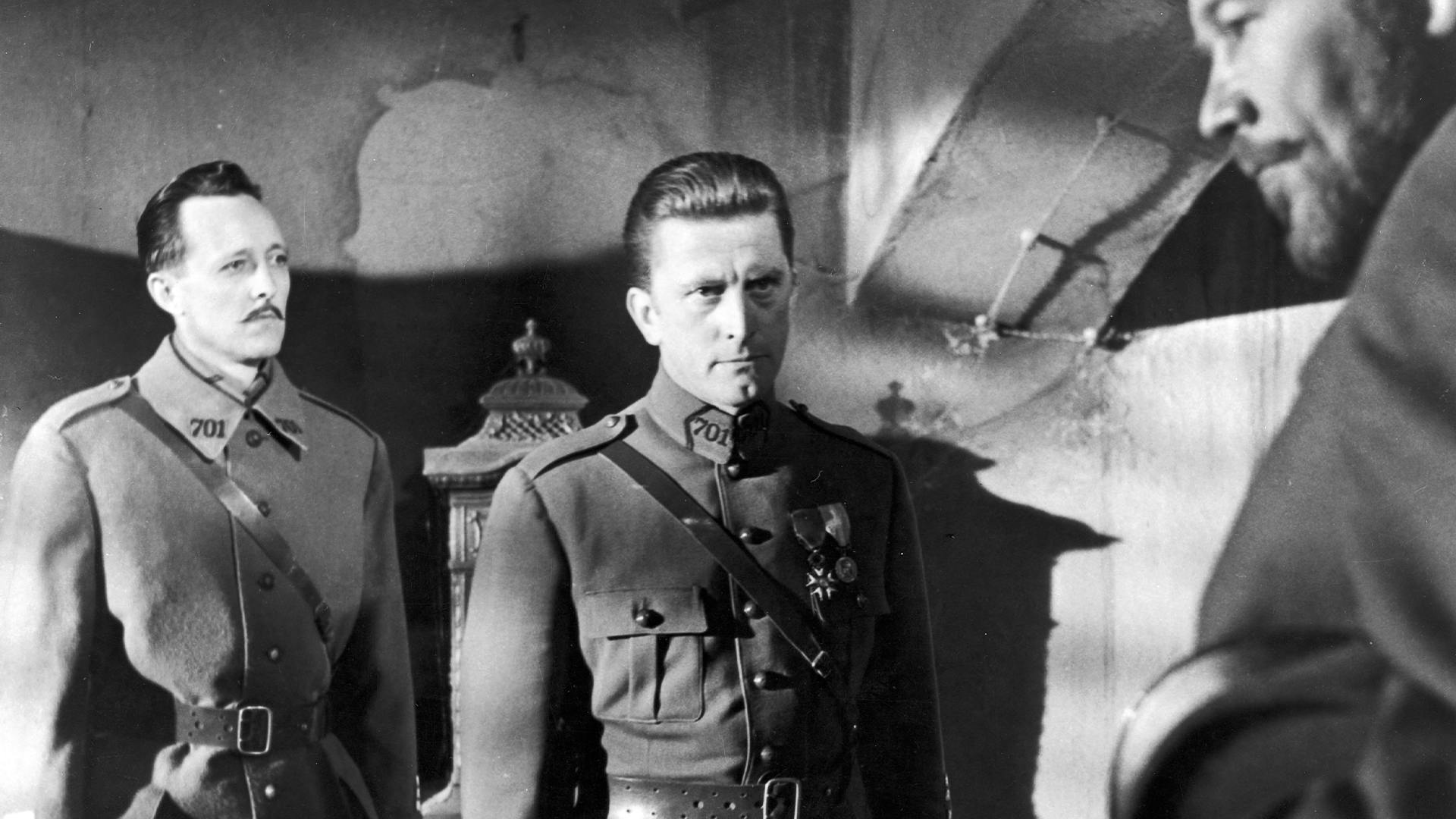 En 1916, durant la Première Guerre mondiale, une offensive suicidaire des soldats français tourne à l’échec. Son instigateur, l’ambitieux général Mireau, fait passer en conseil de guerre trois survivants. Le colonel Dax assure leur défense.