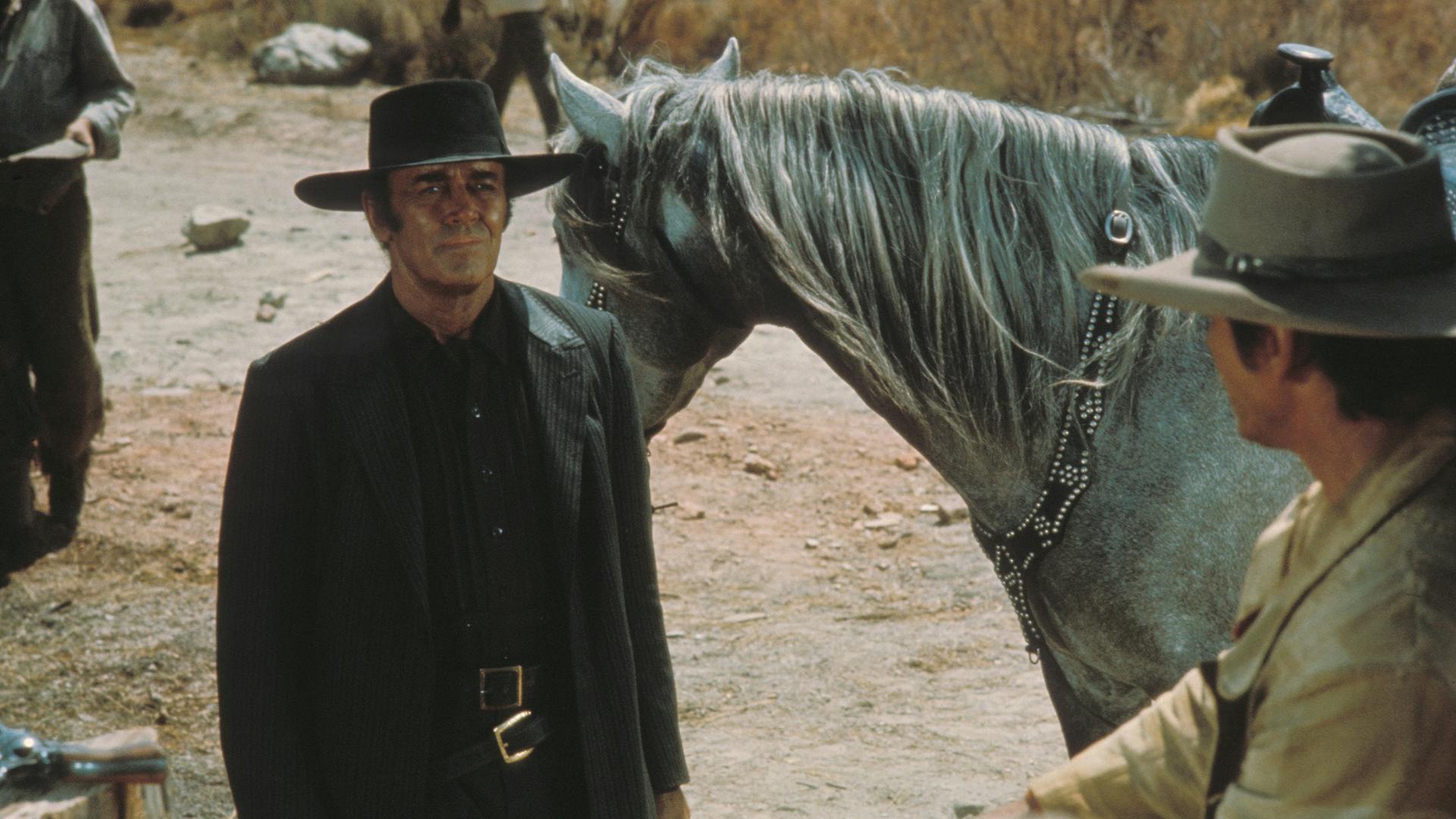 Dans l’Ouest américain, trois hommes en longs manteaux et aux mines patibulaires attendent sur le quai d’une gare déserte. Un train passe et un homme en descend. Il recherche un certain Frank. Il finit par abattre les trois bandits.